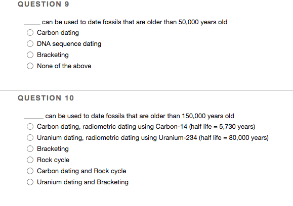 Carbon dating is a dating technique predicated upon three things: Carbon dating is useful for something that was once alive, but what about something that was never alive, like rocks or our cast and mold fossils? Carbon 14 with a half life of 5,700 years can only be used to date fossils of approximately 50,000 years. It can only be used to date fossils younger than about 75,000 years. How is carbon dating used to determine the age of fossils?